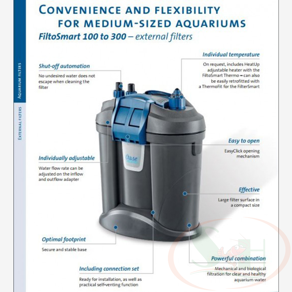 * Oase FiltoSmart đã bao gồm sẵn đầy đủ phụ kiện, bông lọc và vật liệu lọc cơ bản theo máy (không bao gồm sưởi).