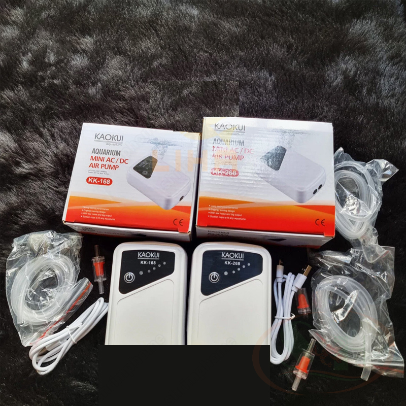 Máy sủi tích điện Kaokui AC / DC Mini Air Pump là dòng sủi oxy mới của KaoKui vừa chạy điện nguồn vừa tích hợp trữ điện để máy có thể vận hành trong lúc cúp điện (với 2 chế độ chạy liên tục và chạy ngắt quãng thông minh giúp kéo dài thời gian vận hành).