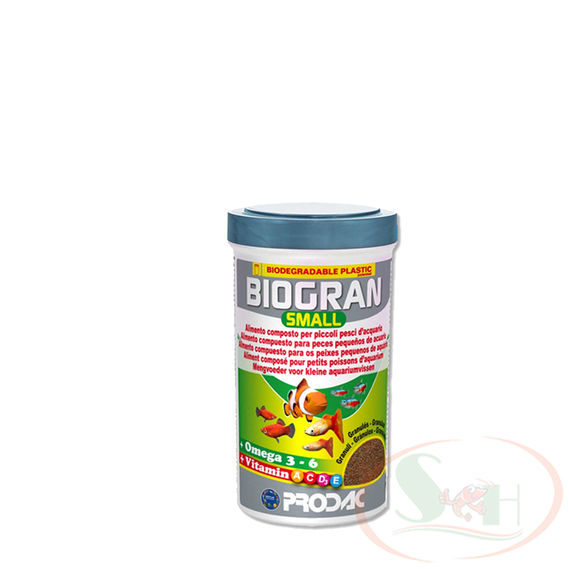 Thức ăn cá Prodac Biogran Small hạt nổi là thức ăn dạng hạt nhỏ (granules) được thiết kế dành riêng cho cá cảnh kích thước nhỏ trong bể nước ngọt và nước mặn. Prodac Biogran sử dụng công thức cân bằng dinh dưỡng từ nguyên liệu tự nhiên, giúp cá phát triển khỏe mạnh, tăng cường sức đề kháng và duy trì màu sắc rực rỡ.